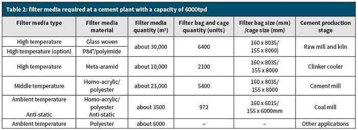 According the experience, table 2 shows that the filter media quantity in a cement plant, which capacity is 6000 ton per day
