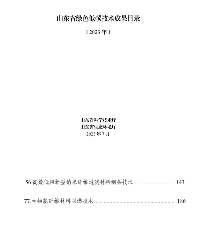 山東省科技廳和山東省生態(tài)環(huán)境廳聯(lián)合發(fā)布《關于發(fā)布<2023年山東省綠色低碳技術成果目錄>的通知》,山東奧博環(huán)??萍加邢薰镜?/span>2項技術成果《高效低阻新型納米纖維過濾材料制備技術》、《生物基纖維材料阻燃技術》,成功入選該目錄!為助力可持續(xù)發(fā)展,具有重要意義!