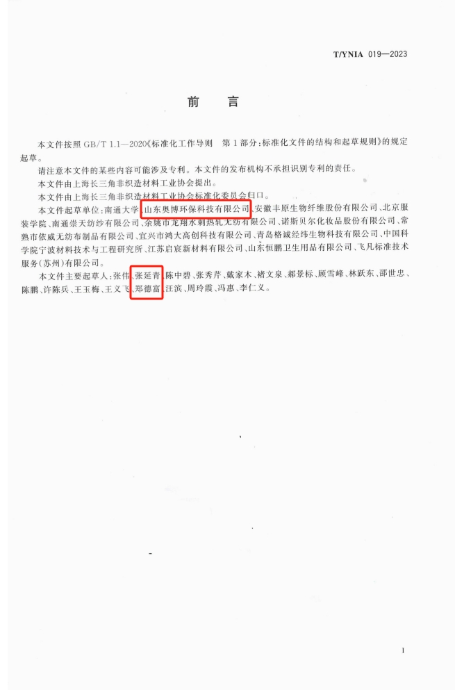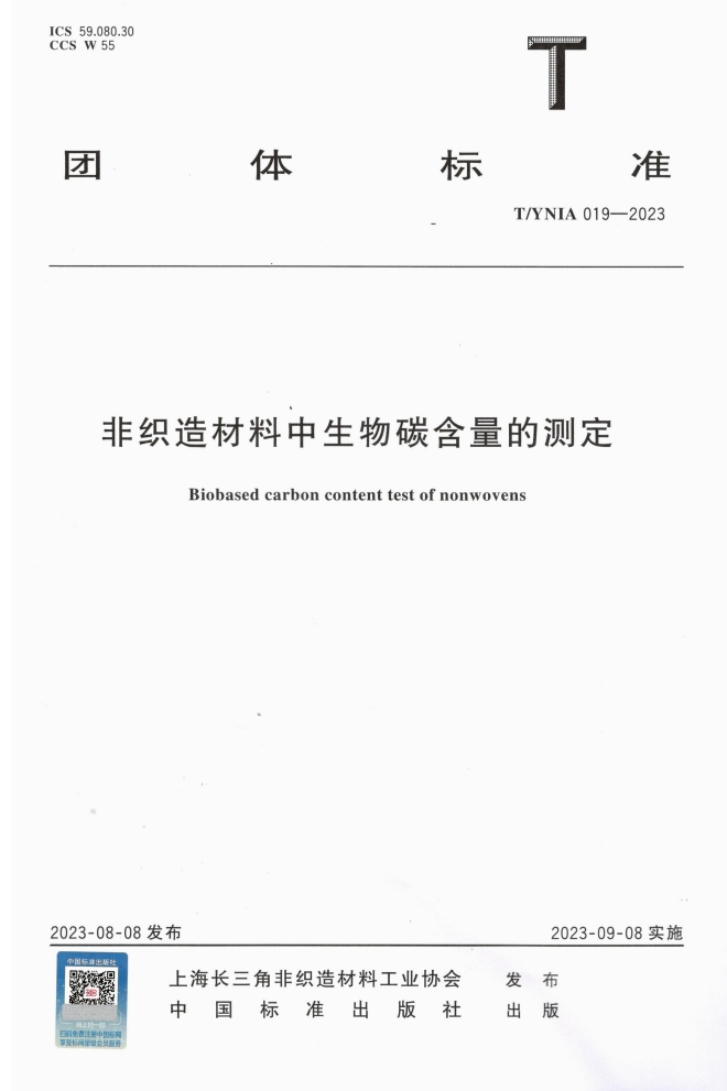 團(tuán)體標(biāo)準(zhǔn)T/YNIA 019-2023《非織造材料中生物碳含量的測(cè)定》,由上海長(zhǎng)三角非織造材料工業(yè)協(xié)會(huì)發(fā)布,山東奧博環(huán)??萍加邢薰緸橹饕鸩莺屯瓿蓡挝弧?/span>