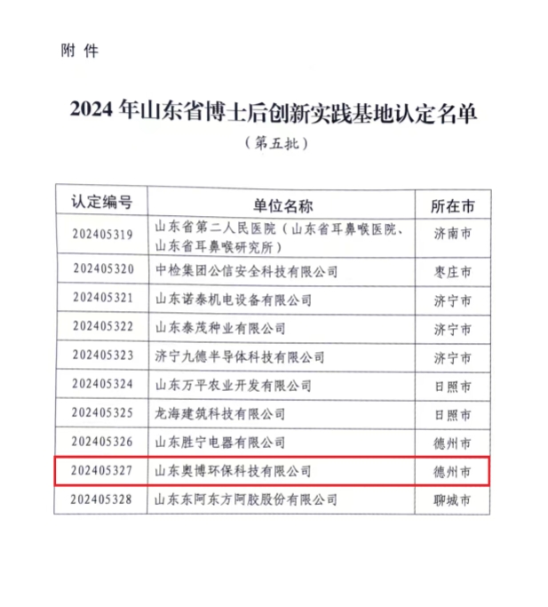 根據(jù)《山東省博士后創(chuàng)新實(shí)踐基地管理辦法》(魯人社字〔2020〕91號)有關(guān)規(guī)定,認(rèn)定山東奧博環(huán)保科技有限公司為山東省創(chuàng)新實(shí)踐基地,授予“山東省博士后創(chuàng)新實(shí)踐基地”牌匾。